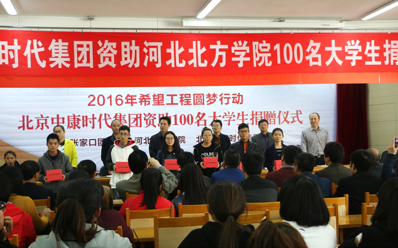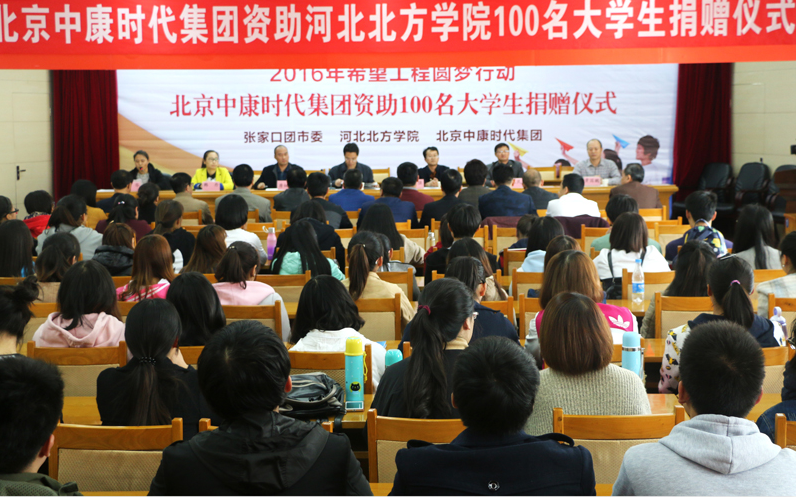 今年是中康时代与张家口希望工程办公室圆梦行动签署助学协议的第五个年头。10月25日,唐细忠带领中康时代部分高管来到河北北方学院,向受助学生代表发放了每人1000元助学金,同时赠送了励志书籍——作家刘墉撰写的《创造自己》。他鼓励同学们要树立战胜困难的勇气和信心,把攻坚克难作为一种历练,在逆境中奋起,实现自己的人生目标,同时珍惜大学的学习时光,努力学知识、长本领、增才干。