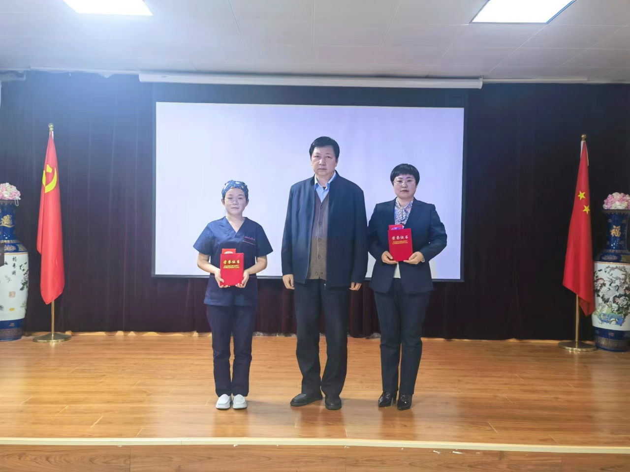 最后,唐董亲自向四家医院代表一一授书《品管圈应用实践手册》,希望大家能不断学习优秀案例,总结成功经验,内化于心,并学以致用、融会贯通,为明年品管圈活动做好准备。