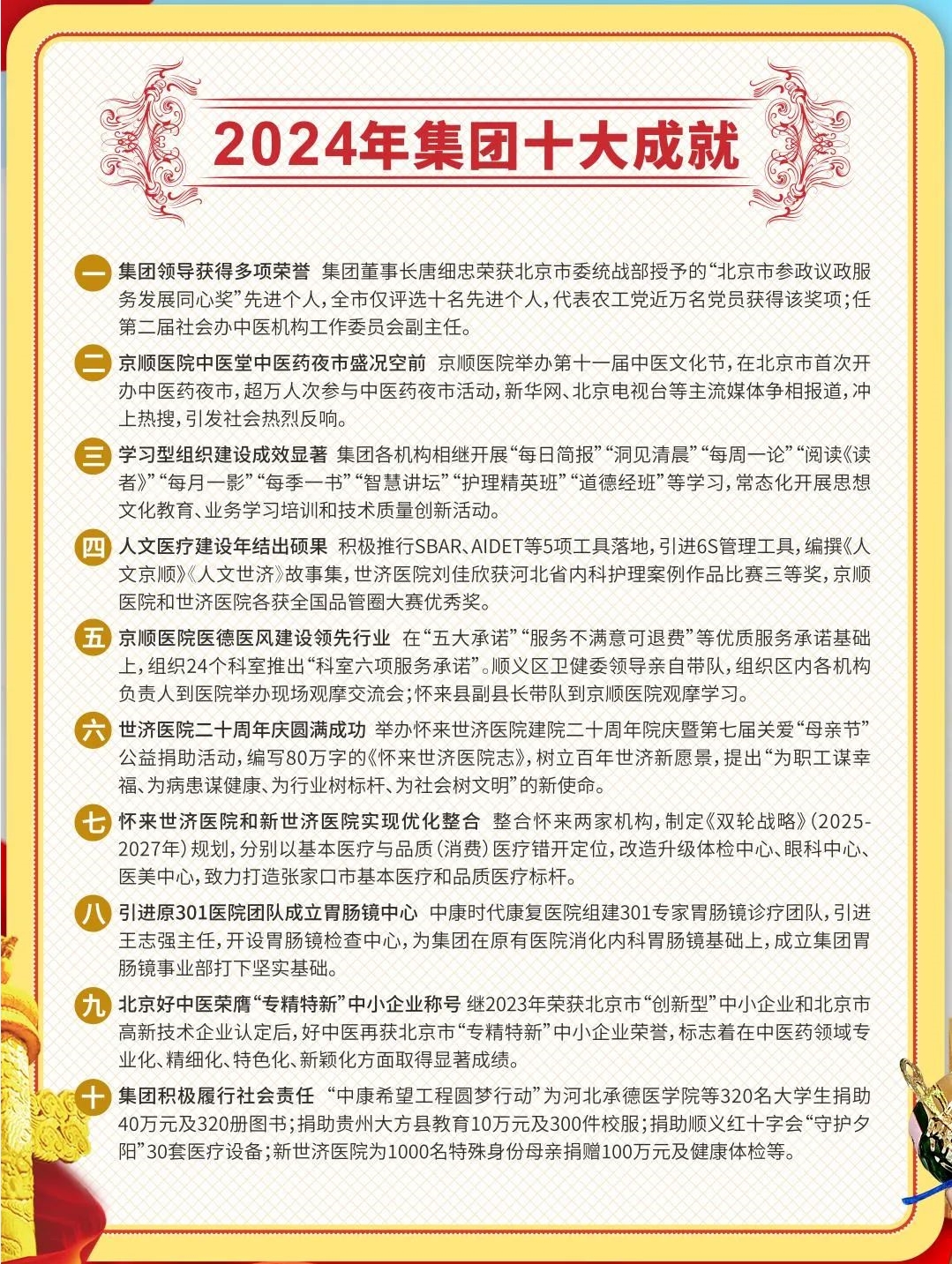 展望2025年,中康人将继续秉承“感恩、尊重、进取、创新”核心价值观和“依法经营、规范管理、诚信医疗、用心服务”经营理念,继续前行,不断超越,共同开创中康集团更加美好的明天。