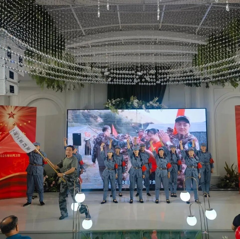 全体人员共同起立高唱《祖国颂》,将现场气氛推向最高潮!特别设置的生日祝福视频环节,为8月份过生日的7名退役军人送上了集团大家庭的温暖惊喜。