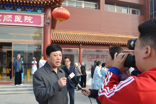 随后,沧州京顺中医堂吴国华院长代表主办方发表讲话,他说:“举办这次活动的目的,旨在弘扬中华国粹——中医和太极拳。沧州京顺中医堂经过四个多月的装修改建,现在以崭新的面貌呈现在大家面前。目前是以中医为主的综合性医院,我们沧州京顺医院作为北京京顺医院的连锁机构,以北京珍京堂中医研究院为依托,汇聚中医诊疗、针灸、按摩、推拿等传统项目,引进先进设备,聘请河北、北京众多名老中医,以全新的面貌、优质的医疗为广大老百姓的健康服务。中医里的膏方,是中药剂型的一种,也是冬季进补,养生治病的良药。膏方有着两千多年的悠久历史,为了把流传千年的保健佳品让老百姓也可以享用到,所以举办膏方节。沧州京顺中医堂恪守“好中医,用好药”的理念,利用中医治疗疾病的优势,为人民群众的健康生活贡献力量,促进沧州市医疗卫生事业的发展,将中医与太极拳这些国粹文化发扬光大。”