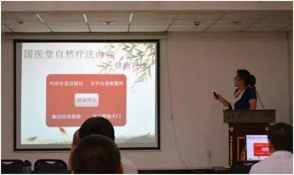 、、2016年7月21日,北京京顺中医堂特别邀请了中华反射健康法研究会委员、中华自然疗法指定推广人、宁波北仑国医堂中医研究院副院长杨佳人女士来我院开展“自然疗法”培训讲座。中康时代集团唐董事长、京顺中医堂黄院长、霍院长、医务人员以及来自卫人医院、燕龙医院、兴华医院的营销主管等30余人参加了此次培训讲座。