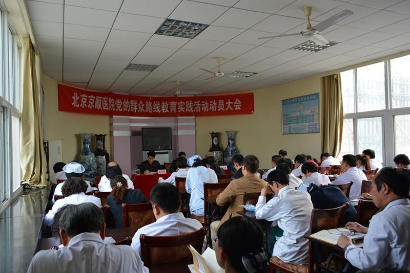 2014年4月15日下午,京顺医院召开动员大会,部署医院党的群众路线教育实践活动,医院党支部书记郑文贤进行动员,区卫生工委督导组组长、卫生局工会主席孙红作了重要讲话,医院院长陈建平主持会议。