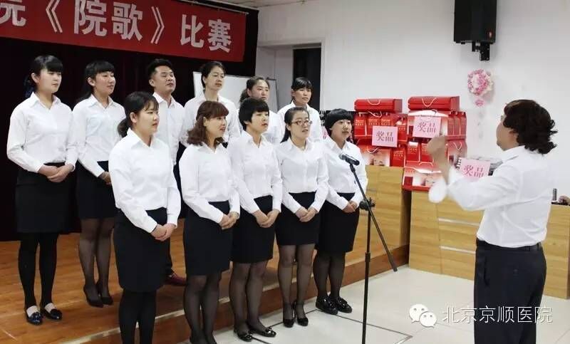 下 午四点整,比赛正式拉开序幕。副院长付爱华一一介绍评委嘉宾及宣布比赛规则、评分标准与奖项设置后,还向大家介绍院歌《我们是京顺人》的深刻内涵:既展现 出了京顺10年的艰辛历程,也承载了京顺人践行感恩、尊重、进取、创新的精神及高尚品质。随后,7个代表队相继登台竞唱。尽管参赛选手们来自不同的工作岗 位,但个个都身怀绝技、唱功不凡,时而深情款款、时而豪迈奔放、时而柔情似水、时而激情宣扬,令现场掌声雷动、高潮迭起。其中综合病区代表队将慷慨激昂的 院文化体系和白衣天使宣言穿插到歌唱之中;妇产科代表队中的张玉林主任已过七旬,亲自上台带队,深情地唱出了老一辈同志热爱工作、乐于奉献的情怀;财务行 政后勤代表队身着统一的正装,将高亢有力和婉转悠扬完美的相结,把整个歌唱比赛的气氛一次次推向了高潮……